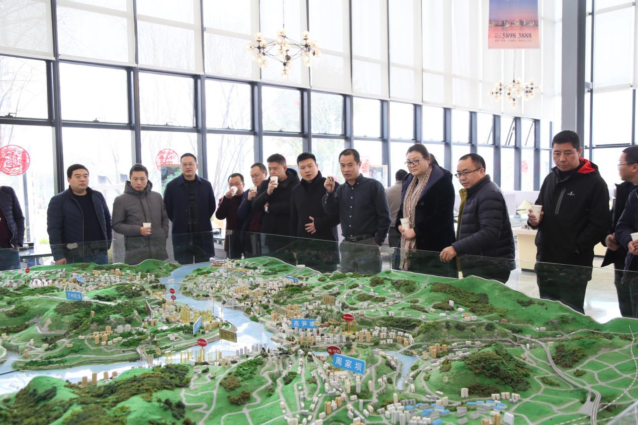 在長江之星售房部,李董事長借助沙盤模型,就城市規(guī)劃,特別是海成集團各項目在城市中的定位和建設效果,進行了詳細的解讀,石縣長對海成集團在萬州城市建設中發(fā)揮的作用十分認同。