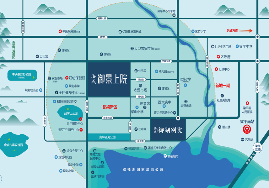 海成御景上院,百億海成深耕梁平,擇址雙桂湖智創(chuàng)生態(tài)城,傾力打造18萬方寬境生活作品,是繼海成御湖別院之后的升級版人居范本。項目以南北朝向的規(guī)劃、寬闊樓間距、以及30%的綠化率、打造高端低密住區(qū),承載舒居美好生活。